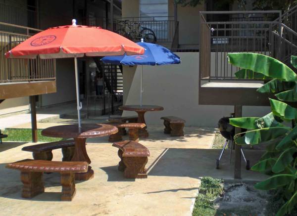 OPEN FLOWING FLOOR PLAN - COMFORTABLE LIVING First Floor Unit with Ceramic Tile Floors, Convenient pass thru bar from kitchen to dining room; great storage. Spacious 900 Sq Ft 2 bedroom 1 1/2 bath floor plan and sliding glass door to balcony. Solar Screens. Gorgeous 2-Tone paint; mini blinds throughout. Central AC & Heating. Two barbeque and patio areas with picnic tables and a dog park. Two on site laundry centers. Lighted and covered carports.