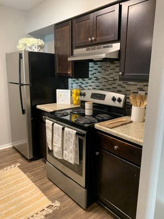 β¨ Walk-in closets β’ Private balcony/patio β’ Faux wood floors β’ LED lighting β’ Black appliances