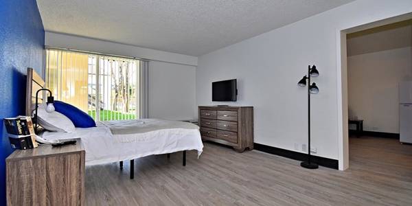 Here at Siegel Suites, we offer fully furnished studio and one-bedroom apartments that are move-in ready (with kitchenettes coming soon). Want to bring your own bed or other furniture? No problem. We can quickly and easily un-furnish what you want to bring. Rent your flexible-stay apartment today with no long term lease required, your choice of low weekly or monthly rent, and bad credit ok. Our studio and 1 bedroom apartments are pet friendly and a great value. Each suite comes with free utilities, free cable TV, and more. We also have a new sparkling pool for those warm Texas summers.