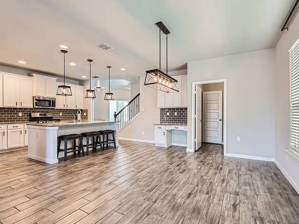 Spacious 2 Story with Solar Panels Located in Texas Research Park! Home Features 4 Bedrooms with Dual Primary Bedrooms One Upstairs and One Downstairs * 3.5 Baths * Study with French Doors * Upstairs Game Room * Large Kitchen Island with Stainless Steel Appliances and Gas Cooking * Wood Look Tile Floors * Dual Vanity Sinks with Separate Garden Tub and Shower in the Downstairs Primary Bath * 2" Faux Blinds * Garage Door Opener * Covered Rear Patio and more! All Situated on a lot with no neighbors directly behind.