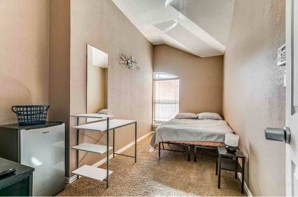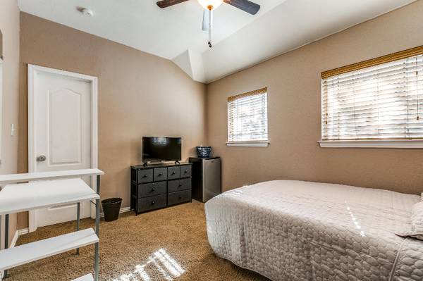 LARGE FURNISHED Private Bedroom with shared bath for rent! Month-to-month lease! No long-term commitment. NO security deposit! Professional monthly cleaning for the common areas is included! Keyless door lock with private code for each resident! The kitchen is equipped with all appliances and a practical layout, coupled with a dining sitting area. Access to a shared laundry room with washer & dryer. We focus on rent by room concept, which offers affordability and flexibility. Move-In process is FAST & EASY! There is NO long-term commitment required and NO security deposit. A one-time $200 non refundable move-in fee is due to hold the room. Each resident will pay a flat rate of $100 for all shared utilities. (Bedding is for marketing proposes only and is not provided). Location: Hyatt Vacation Club & Park Area - 6 mins Shopping (Walmart & Target) & Restaurants - 10 mins. Downtown San Antonio - 20 mins. Contact us today to schedule your tour of YOUR NEW HOME!