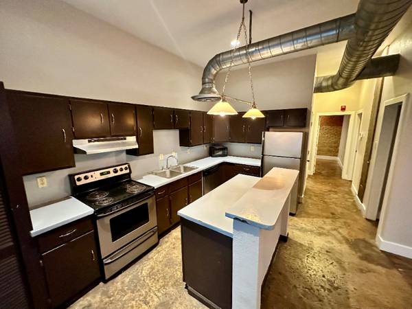 Corner Beautiful Loft in a boutique style historic building with a gated covered parking lot. Featuring: - Open floor plan with lots of light. -12' High ceilings -stained concrete floors -Stackable W/D connection -Private covered patio -Contemporary Italian Glass Lavatories -Oversized shower with tempered glass doors -Modern dark wood cabinetry -Barcelona concrete counter tops -Stainless steel refrigerator and Dishwasher. -Gated parking lot. *Centrally located two blocks from UTSA downtown campus with immediate access to IH35, IH10, H281 and H90. Please, call us to schedule your tour! This loft will not last since this property only has 10 lofts and they are always rented.
