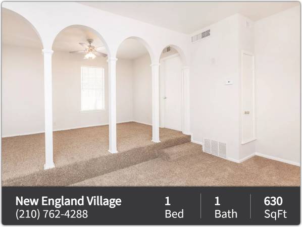 The feeling of home continues outside your door. Enjoy the beautiful historic landscaping on your way to one of our three shimmering swimming pools. We host monthly resident events where you can meet your neighbors. On-call and on-site maintenance, laundry facility, covered and assigned parking, refreshment station, and 24-Hour courtesy patrol are just the beginning of our amenities. Call or stop by today and see what makes New England Village the best apartment community in San Antonio, Texas.