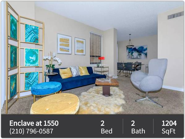 A life of relaxation and luxury is just within reach at the impressive community of The Enclave at 1550. Our stunning high-rise puts you closer to delicious eateries, grand entertainment attractions, and charming boutiques around San Antonio, Texas.