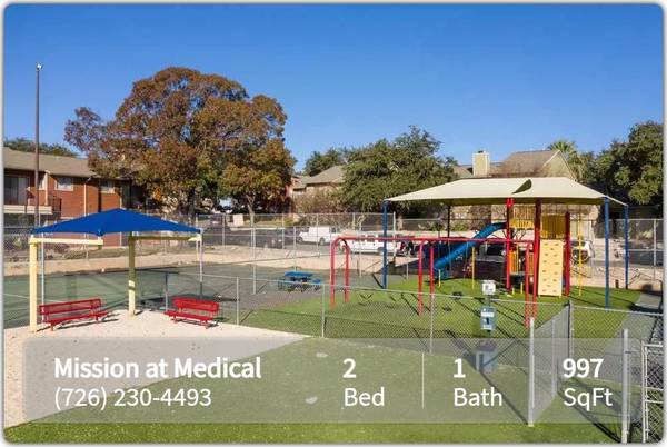 Description: The Mission at Medical Apartments offers many amenities for our residents to enjoy! Relax at one of our three resort-style swimming pools, spend time with your furry friend at our on-site dog park. For your convenience, we also offer a business center with internet access, barbecue stations with picnic tables, soccer field, children's playground, clothes care centers, 24-hour emergency maintenance, and covered parking. Choose the floorplan that fits your lifestyle and take a walkthrough video tour or call our friendly leasing staff to schedule a tour of your new home!