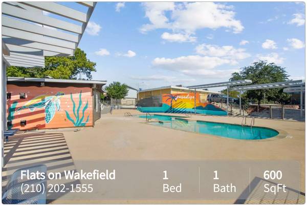 Flats on Wakefield is a vibrant community in NW San Antonio that is close to everything you need. The newly renovated Flats on Wakefield features an exclusive, upscale feel boasting spacious, sleek interiors. Step out of the typical outdated apartments and into a modern living space with updated appliances, flooring and countertops. Flats on Wakefield sports a resort-inspired swimming pool, state of the art fitness center, dog park, business center and optional covered parking. Come live near North Star Mall, dining, entertainment & employment. Choose from multiple floor plans to fit your lifestyle