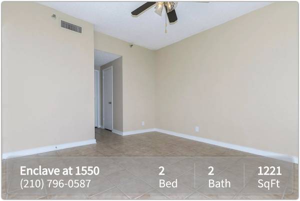 Description: A life of relaxation and luxury is just within reach at the impressive community of The Enclave at 1550. Our stunning high-rise puts you closer to delicious eateries, grand entertainment attractions, and charming boutiques around San Antonio, Texas.