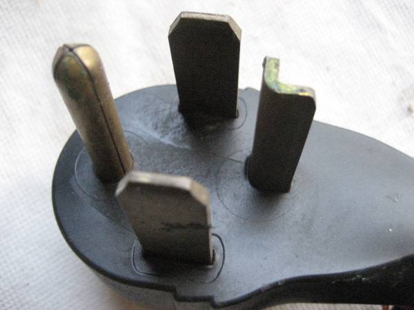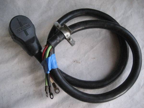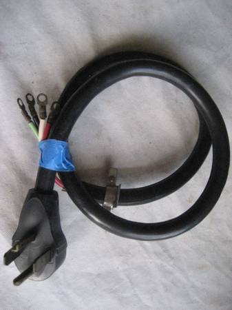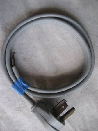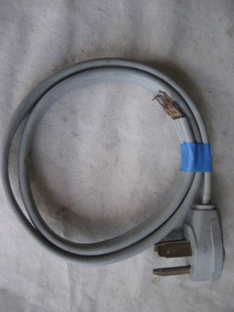 Electrical Dryer cord, 240VAC, 30 amp, 3 prong measuring 4 foot long for sale. This cord is in excellent, fully functional condition with no breaks in the wires. Available for $10.