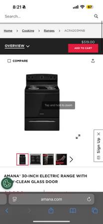 AMANA® 30-INCH ELECTRIC RANGE WITH CLEAN GLASS DOOR $400 brand new in the box