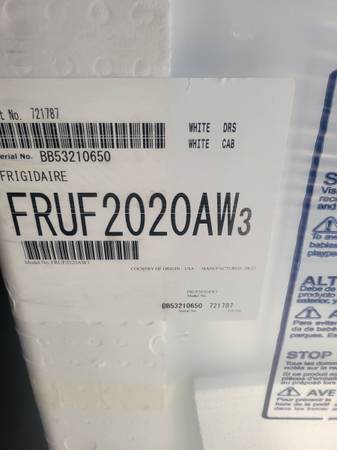 Brand new white 20 cubic foot Frigidaire Upright Freezer with manufacturers warranty 650 cash if interested please call cell number thanks