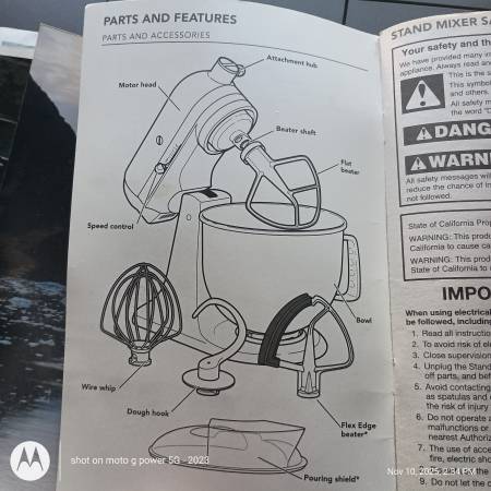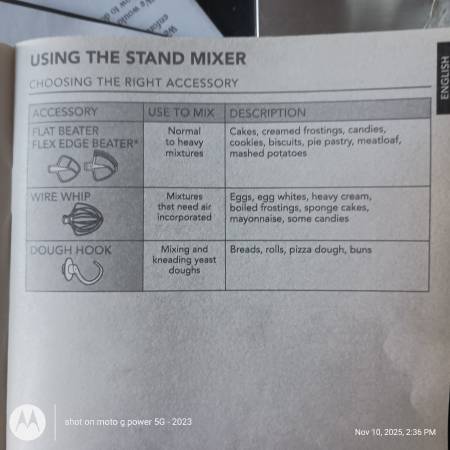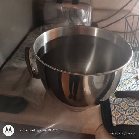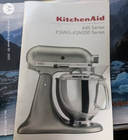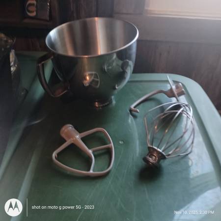 KITCHEN AID MIXER-comes with 3 attachments with large bowl (I measured 4 qts.). This mixer has only been used 2x., so it's like new. Beats from having to hand mix. This mixer did not come with a...