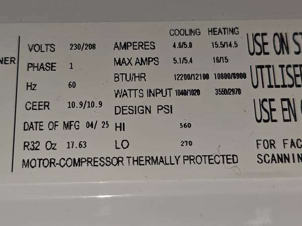 This is a unit for a 550sq ft room. Ac and heater. Alexa wifi feature. It uses 230 volts so it has a 230v plug. Selling ASAP. They sell for $729 new at Lowes as you can see in the picture from the Lowes associate.