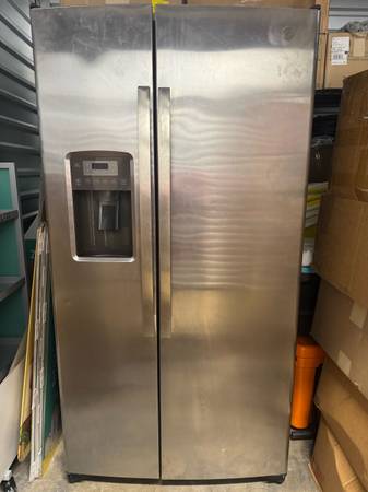 GE Energy Star Side By Side 25.3 cu foot Refrigerator for sale. Very good condition. We bought and remodeled a house and this was in the house before the renovation. Very clean. Stored inside now in a climate controlled warehouse.
