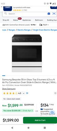 Samsung Bespoke 30-in Glass Top 5 burners 6.3-cu ft Air Fry Convection Oven Slide-In Electric Range ( White Glass ) huge savings only 999.00