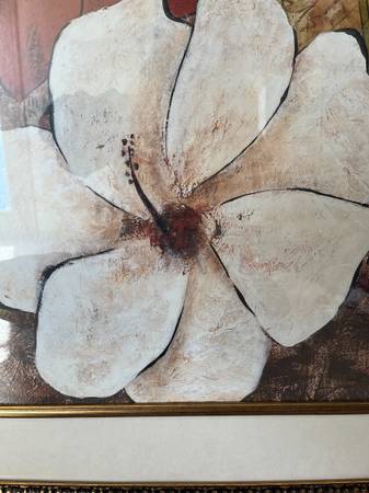 The large square picture has a plastic cover instead of glass, so less risk of sliding down a wall due to weight. There are some spots on the matte that I did not notice while on our wall, but I am hesitant to try to clean before selling because that would disturb the paper backing. The picture is in generally good condition, but has a few places on the frame where some paint seems to have rubbed off onto it. 35 ½” H x 35 ½” W x 1 ½” D. From a non-smoking home. Cash, Cash App, or Venmo only.
