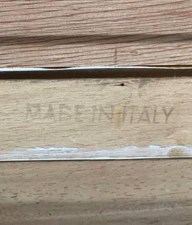 Also note the marking "Made in Italy" on the wood stretcher. DeVity would paint his pieces in France and then mount them when he returned to Italy.