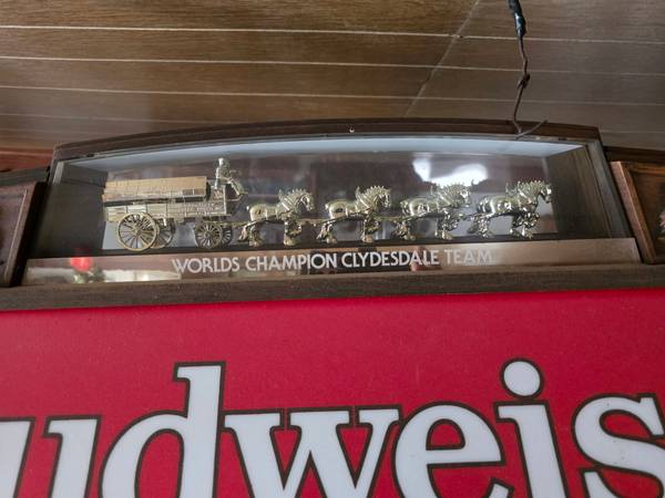 Beautiful 1973 Budweiser Clydesdale pool table lamp in great condition. Located I. Sublime, Texas 8mi. east of Hallettsville on Hwy 90A and County Rd 142. Text