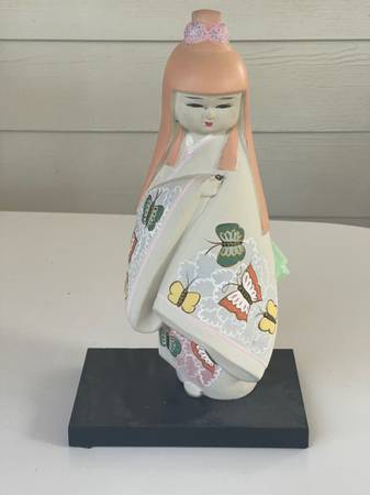 Asian doll figurine. Fun decorative accessory for girls room. 14” tall.