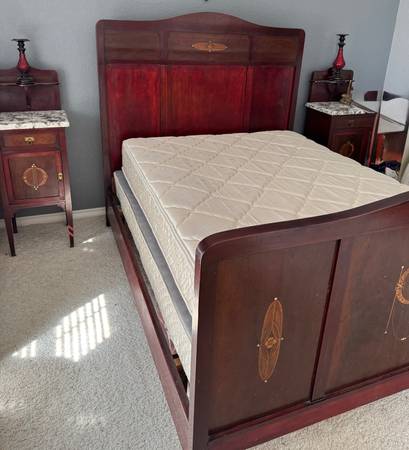 I have a few antiques for sale, bed with end table/cabinets, dresser and Armoire. Bed with end tables - $600 Dresser - $300 Armoire - $600 $1300 for all pieces. 50ne25eight77four7nine Text if...
