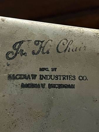 Vintage Jack and Jill Kiddie Metal/Chrome booster chair/seat. Early 50’s used in Diners, Cafés For children. Very Good condition with signs of usage. Great for Displaying Dolls or collectibles