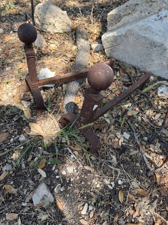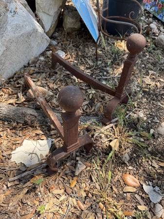 1) Cast Iron Andiron Set / Fireplace Log Holder; once used in old fireplaces to hold firewood off the ground. Nice decorative character with the ball finial. $65.00