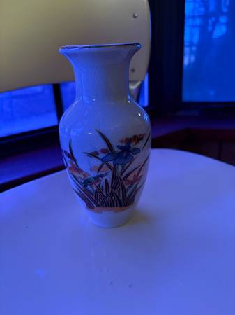 Japanese vase with Iris Flowers and Bird with Gold Trim Ornate Porcelain - Craquelure Glaze Marked - No chips - 6 inches tall - $30 - See Pic 1