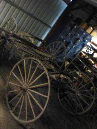 We have a Doctors Buggy project that needs re assembled. The running gear and wooden frame are fine so are the main shafts. Three of the wheels will need work. It's probably about 100 years old. The seat box is sheet metal. If you like to work with wood, this might be a unique project. If you want it for a static display, you wont need to work on the wheels. Maybe if own a BBQ restaurant