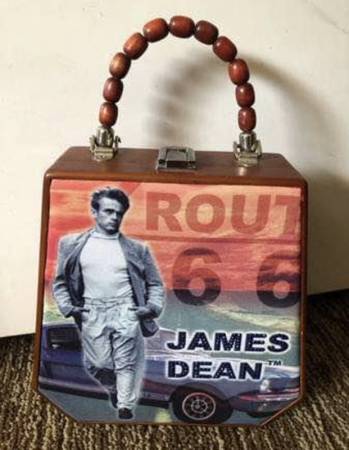 Call or text when ready to purchase TwoOneZero-300-1759 1960s James Dean Wooden Box Purse Handbag Like New Measures 10”x10” $20 local pick up or Shipping Available ($30 shipped) Call or text when...