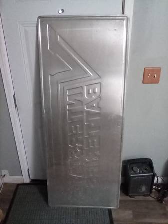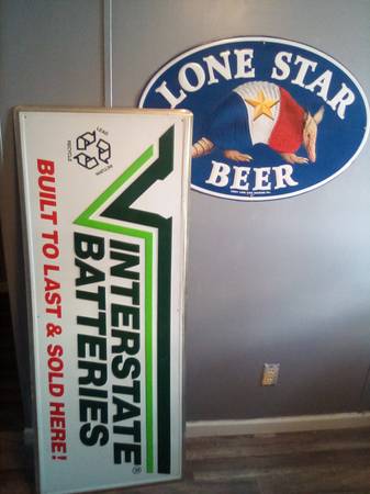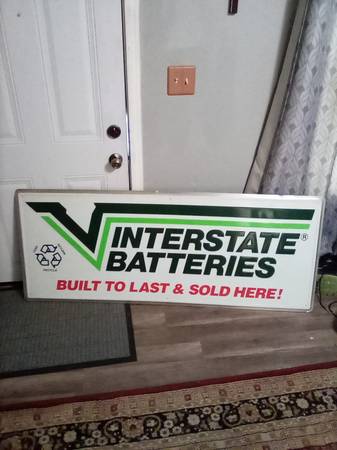 24" x 60" - INTERSTATE BATTERIES - Embossed Tin Sign Excellent Condition - Serious Callers -