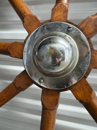 Antique mahogany ships wheel with all mounting hardware. Measures 44" across. Excellent condition.