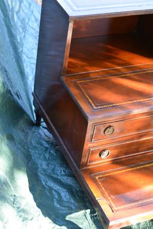 Antique Regency / George III walnut/mahogony library steps gold embossed inlayed leather tops, 2 dovetailed drawers and turned legs, from late 1900’s 18w 24h 27d Very good condition. The last two...
