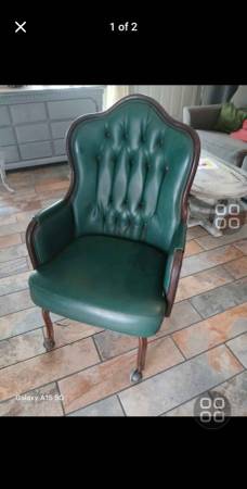 Antique Wingback swivel leather with qood frame arm chair by gassey