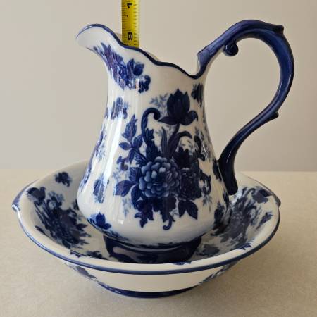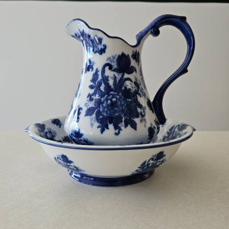 Beautiful Blue and White Porcelain Pitcher and Wash Basin Made In...