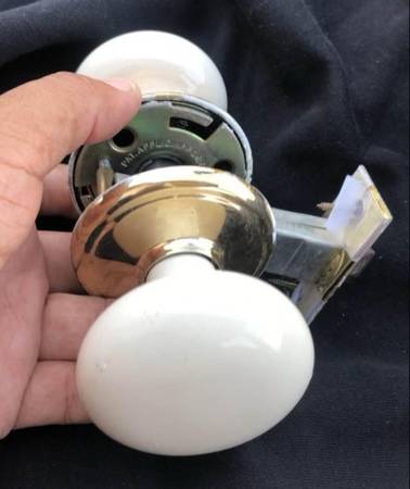 Call or text me if interested TwoOneZero- 664 - 7217 Beautiful Gainsborough Genuine Porcelain Door Knob Set of 2 Doorknobs (Non-Locking Hall, Closet, Bisque Off-white Porcelain Brass) Door knobs $40...