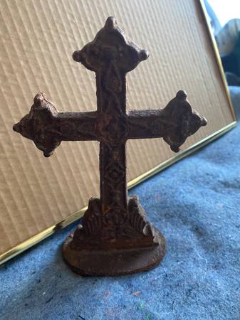 Cast Iron Cross on Stand Double Sided Rustic 7 inches tall 5 inches long $30 local pick up or Shipping Available ($35 shipped) Call or text me if interested TwoOneZero-664-7217 Please text or call...