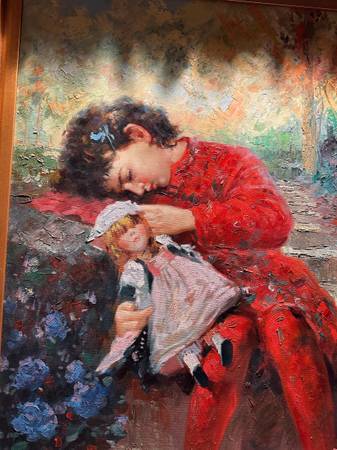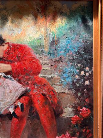 A really stunning oil painting, a gorgeous and uniquely beautiful lady, wonderfully painted, the colors really work together well and add so much to the room!