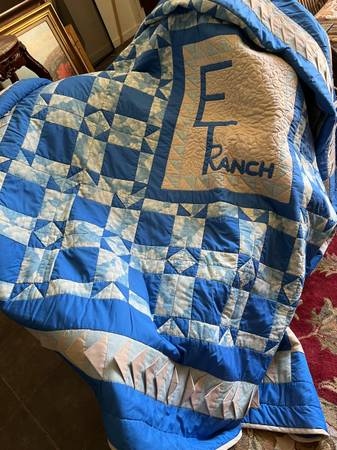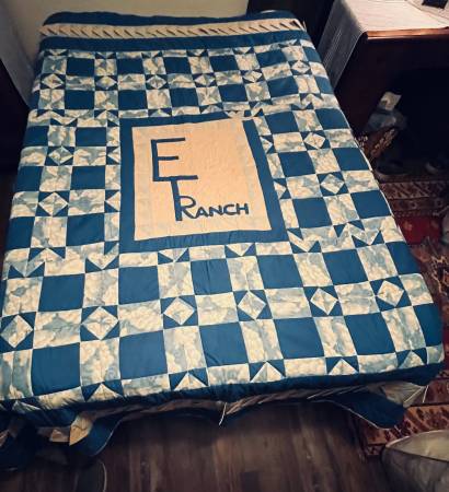 Relatively new handmade quilt. Unusual design Made for the ET Ranch By Vada Original All hand stitched Great Condition Full sized Local pick up only. No shipping or delivery available. I can meet...