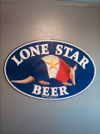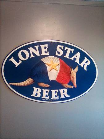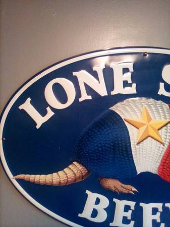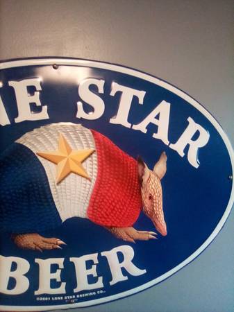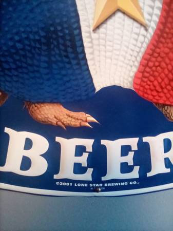 2001- 34" x 22 1/2" - LONE STAR BEER - ARMADILLO - Embossed Tin Sign -$275 - Firm - Must Call or Text No Emails -