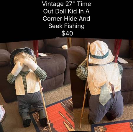 Vintage 27" Time Out Doll Kid In A Corner Hide And Seek Doll Handmade Fishing Excellent Condition! $40 local pick up or Shipping Available ($60 shipped) Call or text if interested TwiOneZero - 664 -...