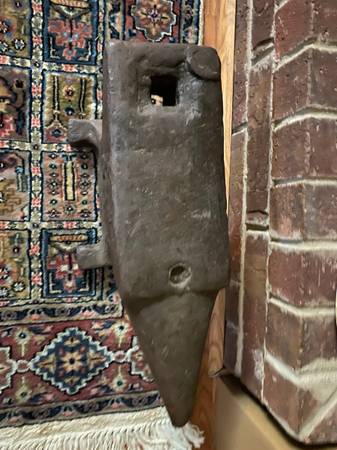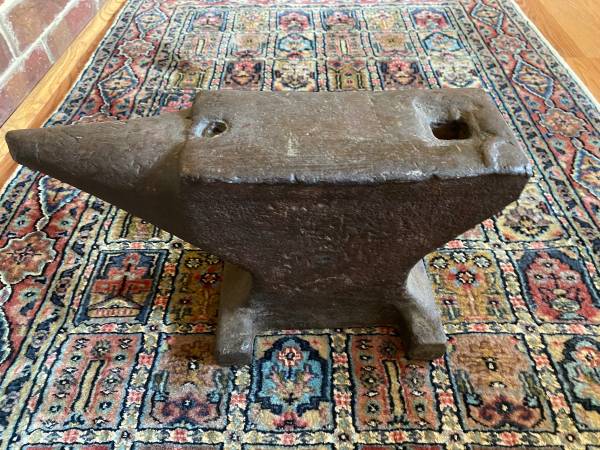 Very old anvil. Weighs about 100#s. It has had some repairs but it displays beautifully. Not sure on maker, but was told it was European. There are markings on it but they are faint. Length 16.5”...