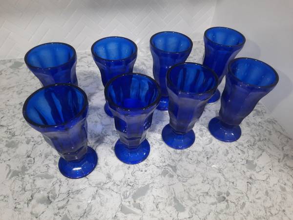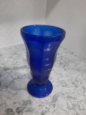 Anchor Hocking Cobalt Blue Pressed Glass Ice Cream Soda Dish Footed Goblet