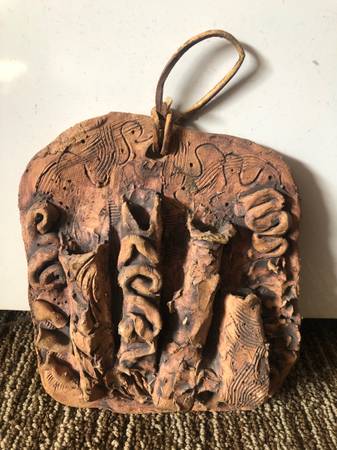 Vintage Terracotta Plaque Art leather strap Handmade Incense Holder Signed by Cump Approx 10in x 8in $25 local pick up or Shipping Available ($30 shipped) Call or text me if interested TwoOneZero-...