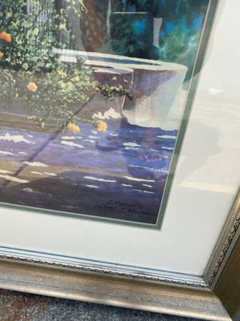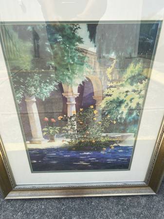 Call or text when ready to purchase TwoOneZero-300-1759 John Maskey Court Yard 14/950 Watercolor limited edition Vintage framed and matted water color on paper $100 Local Pick up or Shipping...