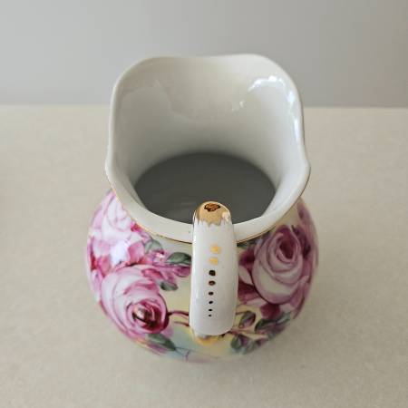 Vintage “Limoges China” Pitcher and Wash Basin Roses $60 or best offer for the set Fuscia pink, teal, and gold. Please review the pictures closely and contact me with any questions. Pitcher and Wash...