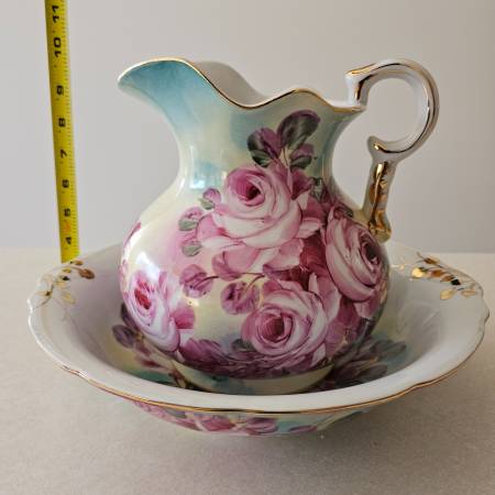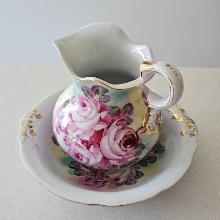 Vintage “Limoges China” Pitcher and Wash Basin Roses - antiques - by...
