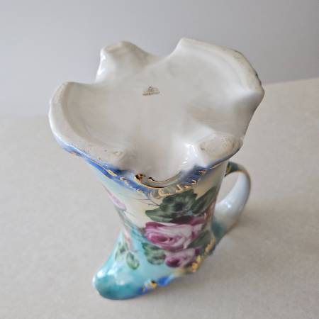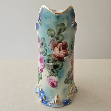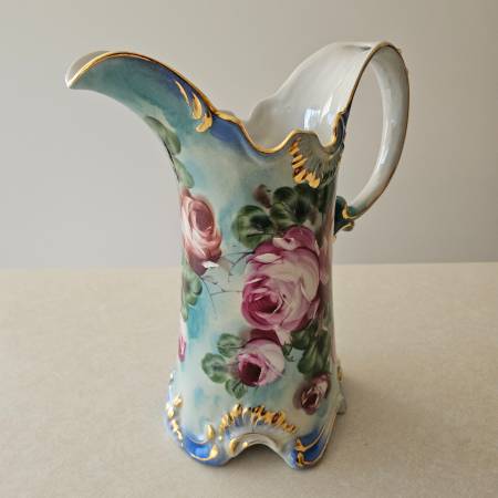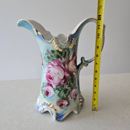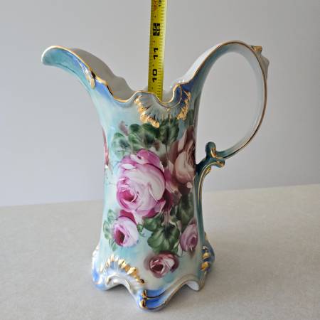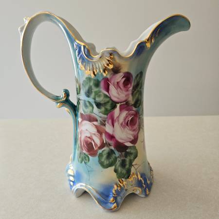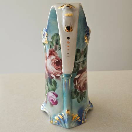 Vintage “Limoges China” Pitcher Roses Pink Blue Teal Gold - antiques...