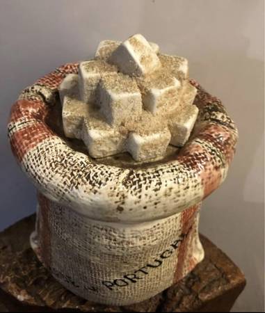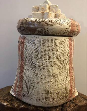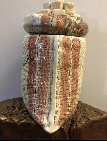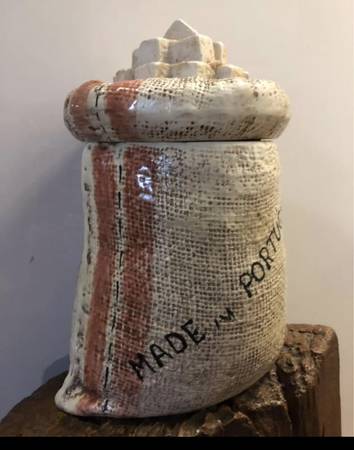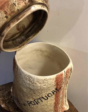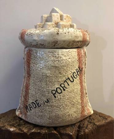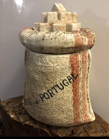Call or text when ready to purchase TwoOneZero-300-1759 Vintage ‘Made in Portugal’ Sugar Sack Cookie Jar Mint Condition! Measures 11in tall x 9in wide $30 local pick up or Shipping Available ($40...