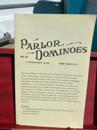 Call or text when ready to purchase TwoOneZero-300-1759 Vintage Parlor Dominoes No. 54 J. Pressman & Co. New York City Wood 2 Complete Sets $50 Local Pick up or Shipping Available ($60 shipped)...