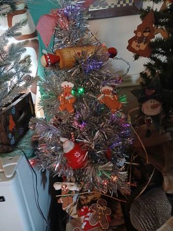 Vintage fiber optic christmas trees silver and white with christmas vintage ornaments $30 each