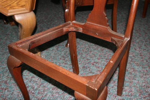 Classic Queen Anne Dining chairs, one captain's and 5 regular chairs. In excellent condition, really well constructed, solid wood, new these would be easily $500 each. Downsizing, these are a real...
